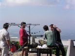 Chlapci z Liberce se "vycajchnovali" a všechno, co slíbili, bylo připraveno. Speciálně patří díky Petrovi OK1FHG. Přípojka i místo na vysílání bylo vzorně připraveno. Turisté, a bylo jich opravdu požehnaně, nejprve zírali na to, kterak vrtáme do betonovo-skalnatého podloží skoby pro uchycení stožárových kotev, později s otevřenými ústy sledovali vztyčovací zápas se stožárem osazeným dvojicí skoro 5timetrových antén a nakonec s výrazem maximálního údivu nahlíželi do našich vysílacích automobilů (asi jako když návštěvníci ZOO sledující rozmnožovací proces paviánů).